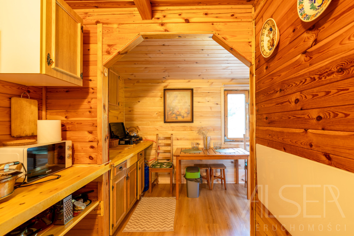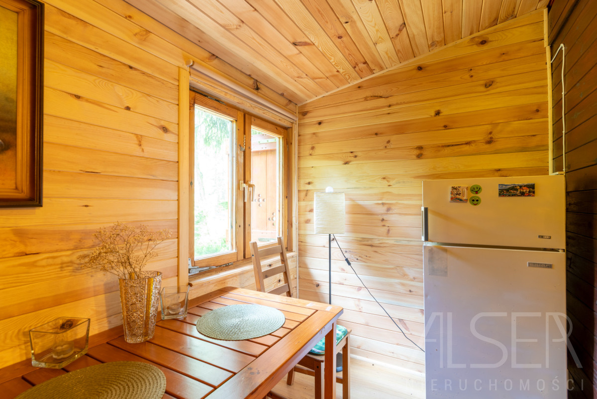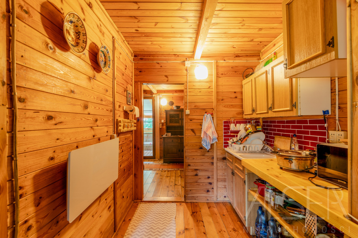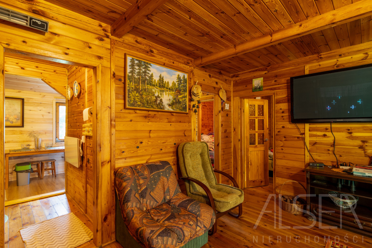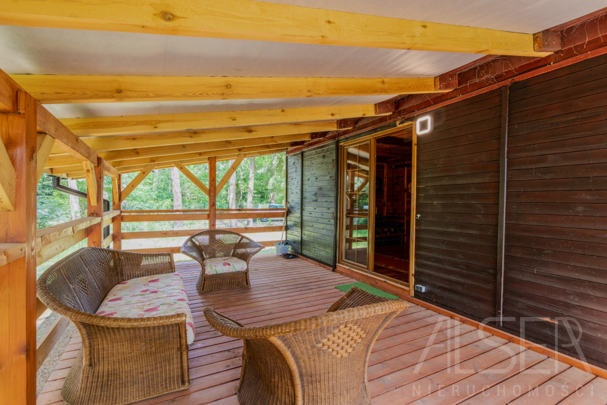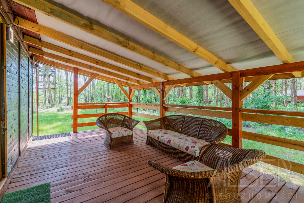 Dom parterowy o powierzchni ok. 40 m2 z dużym zadaszonym tarasem 20 m2, na działce 2000 m2. Dom składa się z 2 sypialni, salonu, wiatrołapu, kuchni oraz łazienki.