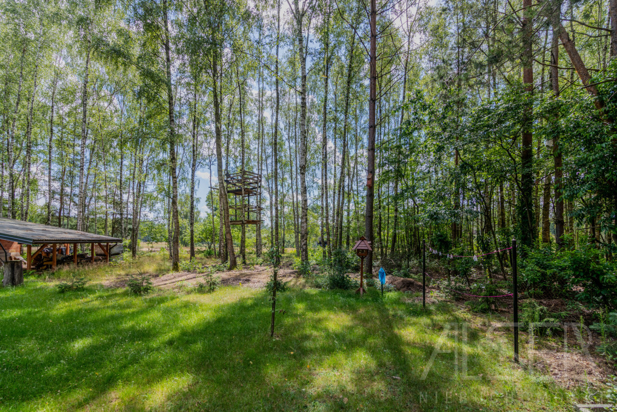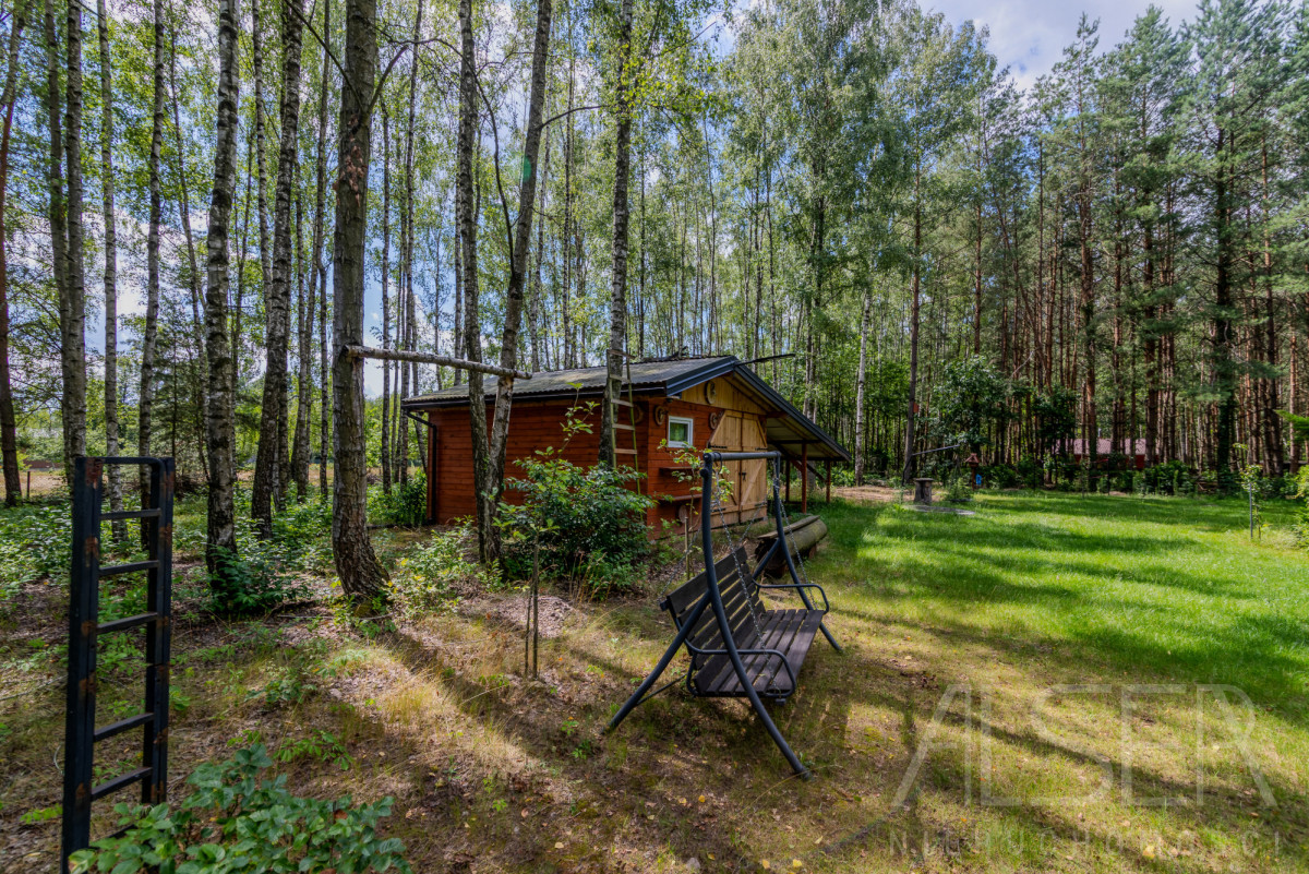 Działka ogrodzona siatką o powierzchni 2000 m2, jej wymiary to 40 m. szerokości na 50 m. głębokości. Na działce znajdują się liczne nasadzenia, kwiaty, krzewy, drzewa iglaste oraz liściaste. Na działce znajduje się również nowy drewniany garaż, miejsce na ognisko/grilla. Cała działka ogrodzona siatką. Jest również dostęp do światłowodu.