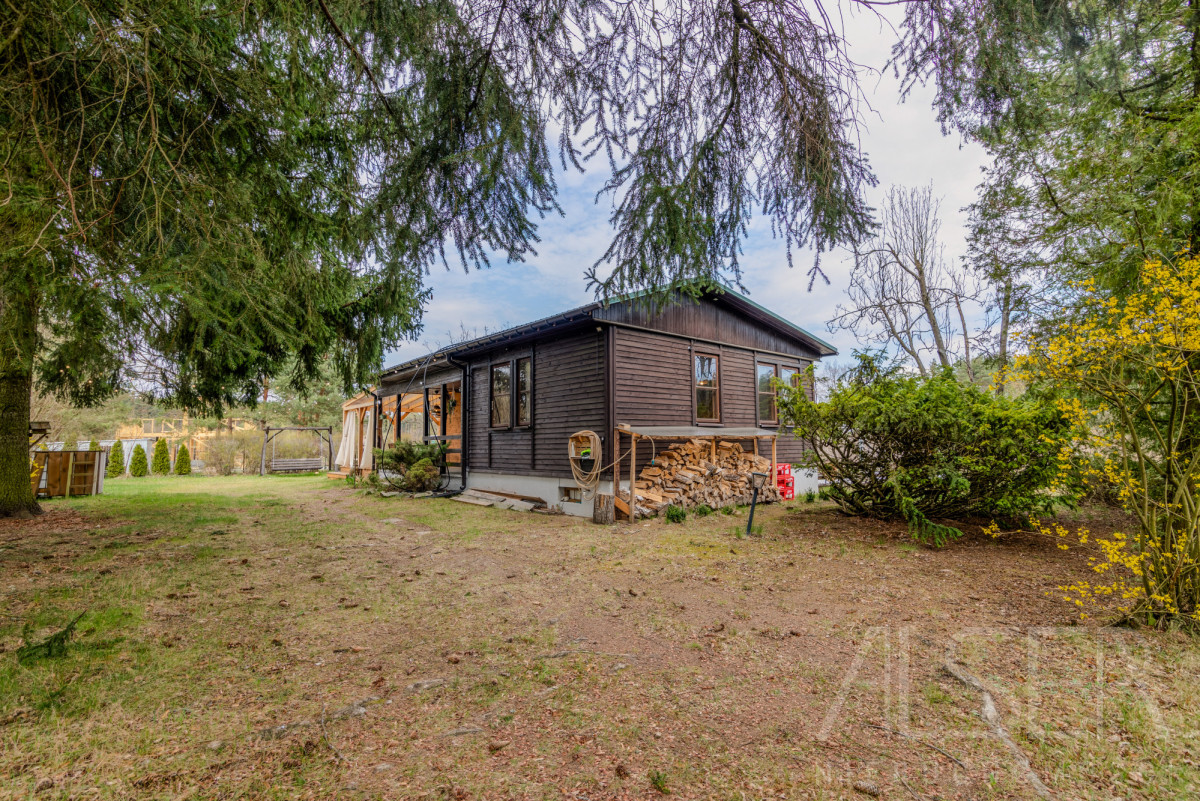Budynek wybudowany jest w technologi drewnianej zachowany w bardzo dobrej kondycji. dach pokryty jest blachodachówką. Niewątpliwym atutem domu jest jego garaż w podziemiu w bryle. Razem z podpiwniczeniem stwarza nam to dodatkową powierzchnię gospodarczą. W piwnicy znajduje się hydrofor oraz elektryczny podgrzewacz wody. Cały budynek jest podłączony pod czujki ruchu.