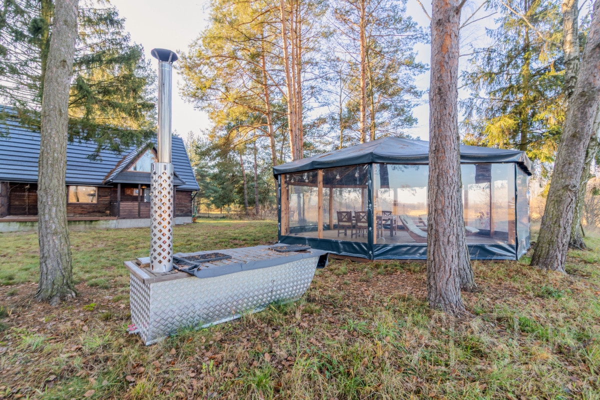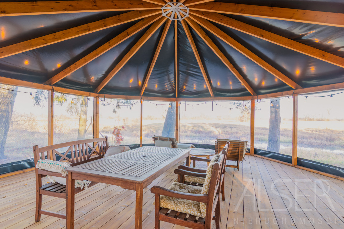 Działka uzbrojona, doprowadzona siła, szambo oraz własna studnia. Na działce wybudowane zostało również drewniane pomieszczenie gospodarcze wraz z drewutnią. Na działce znajdziemy również dużą altanę ogrodową oraz wannę z których to widok jest na własny staw oraz okoliczną zieleń.