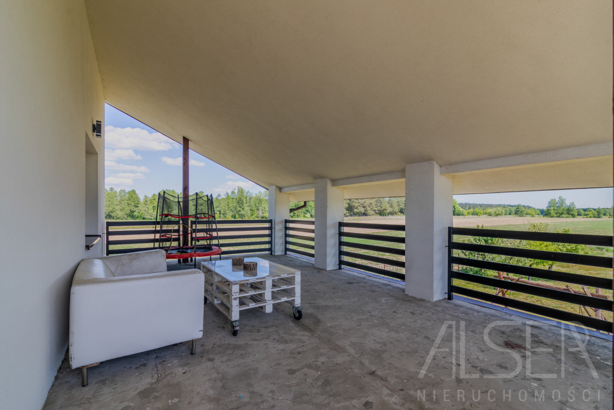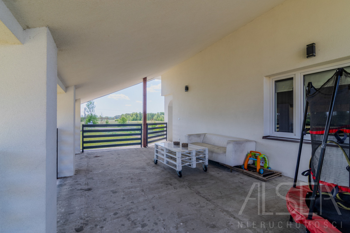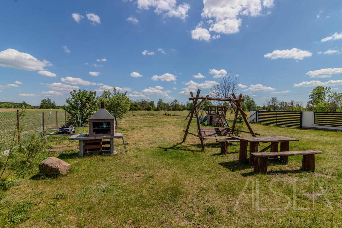 Dom znajduje się na dużej, ogrodzonej działce, która daje ogromne możliwości aranżacyjne: