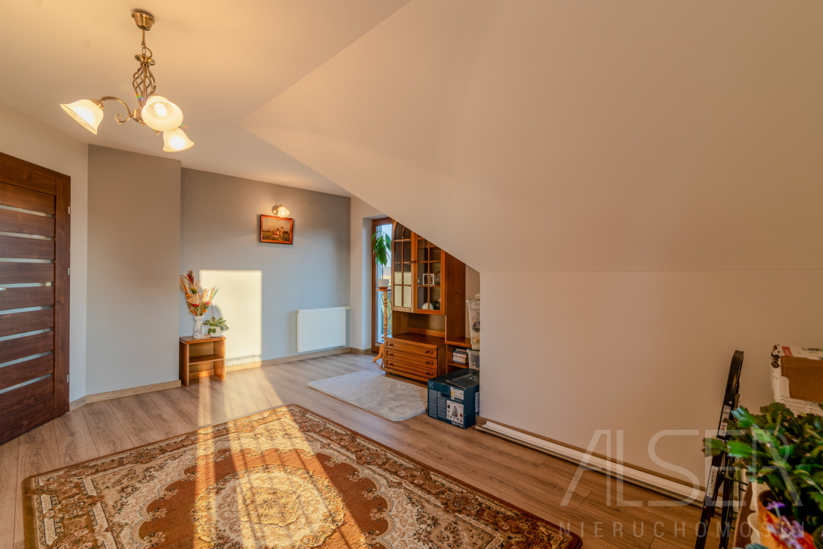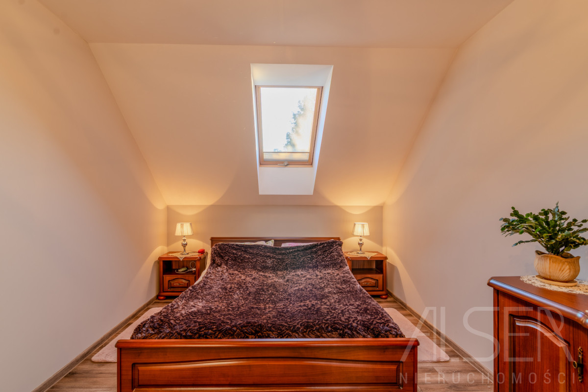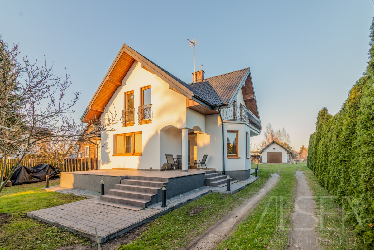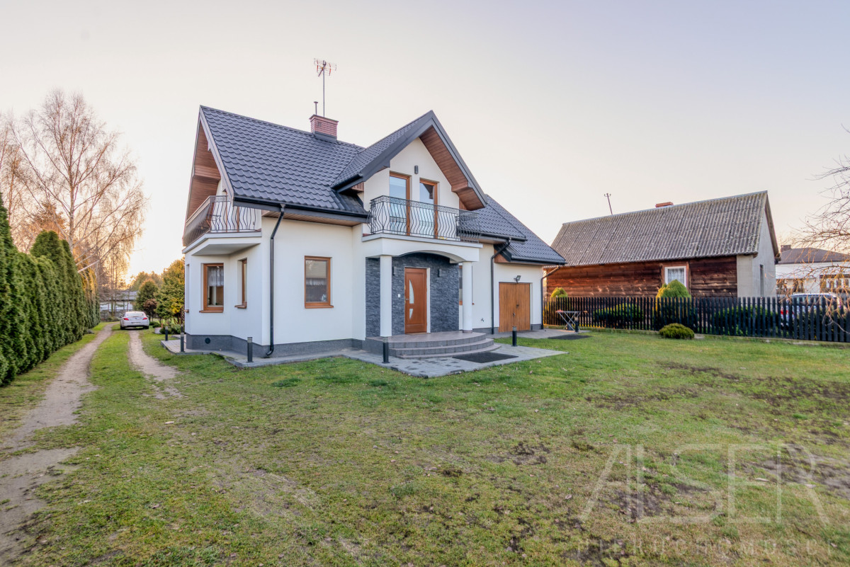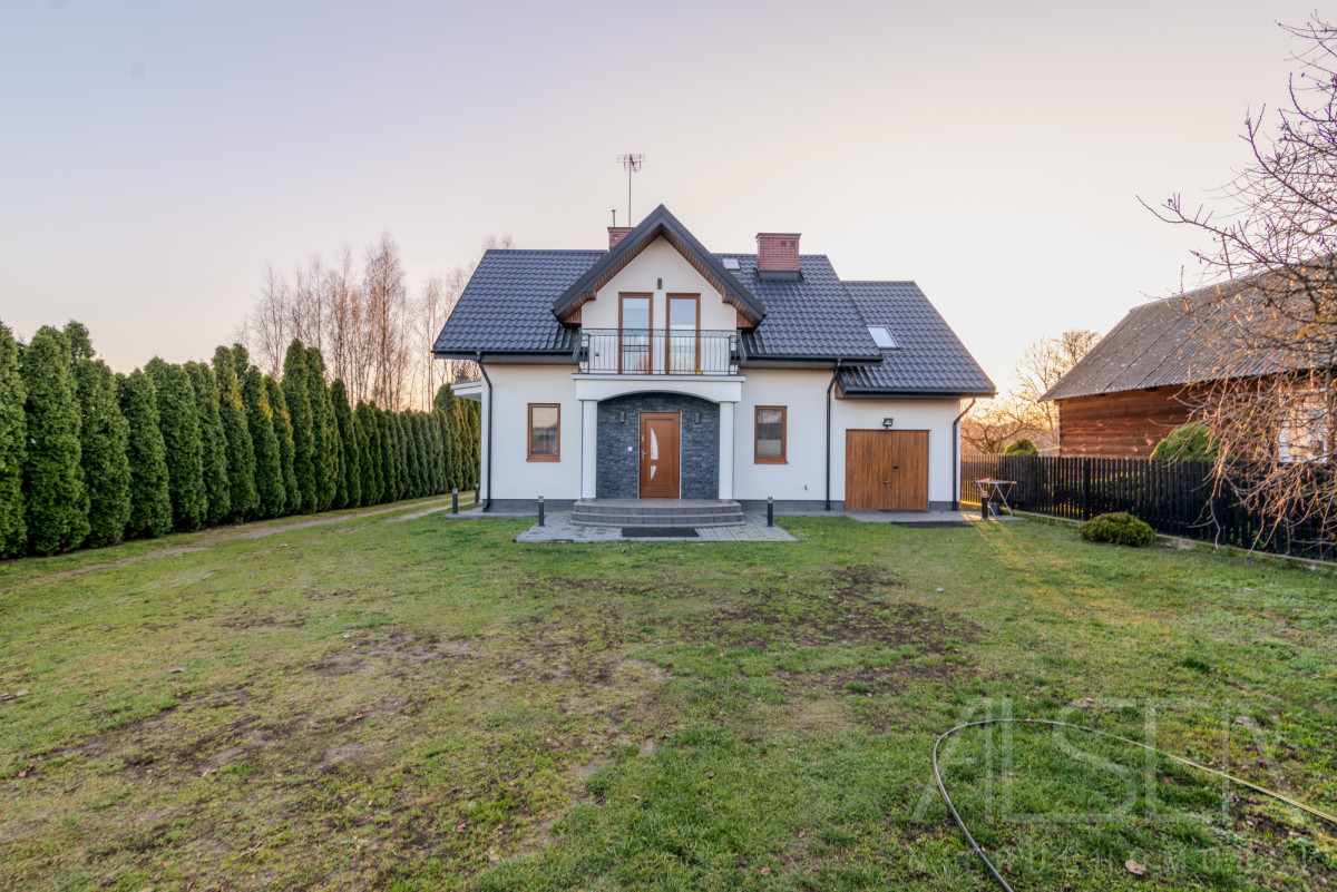 wybudowany w 2019 roku, zachowany w idealnym stanie. Powierzchnia użytkowa domu wynosi 141,10 m2. Dom składa się z parteru, piętra oraz strychu. Dwa sklepienia. We wszystkich pomieszczeniach okna PCV. Na podłogach położony gres oraz panele podłogowe. Ogrzewanie piecem na pellet. Rozkład poszczególnych kondygnacji wygląda następująco: