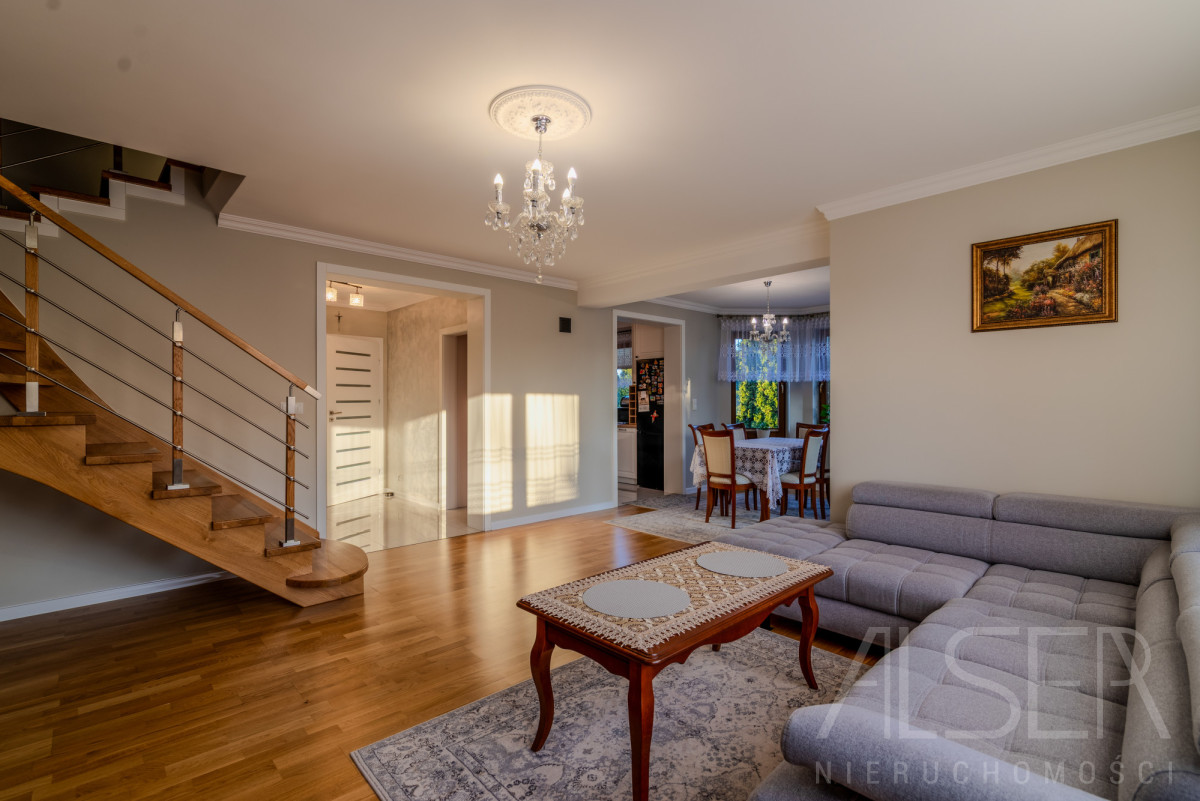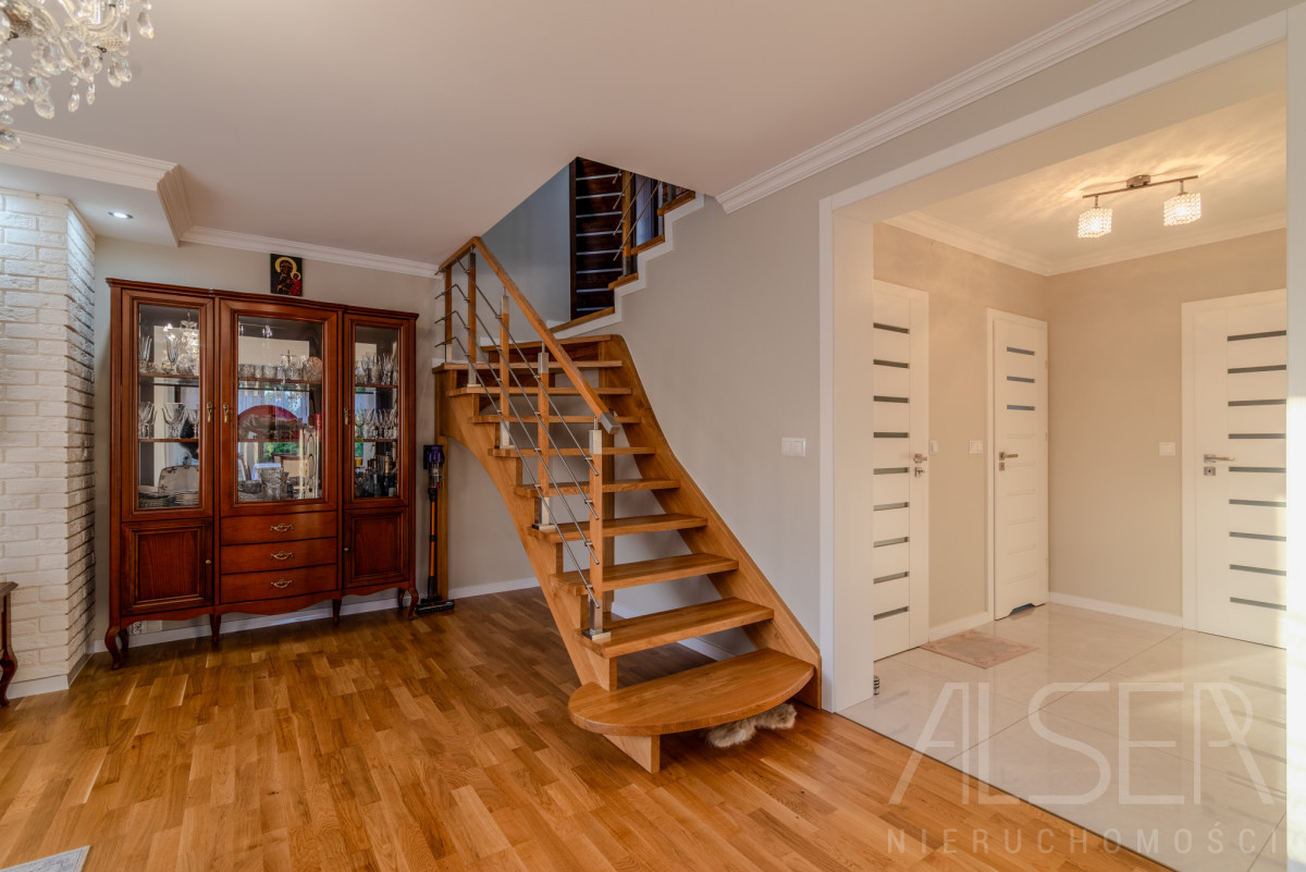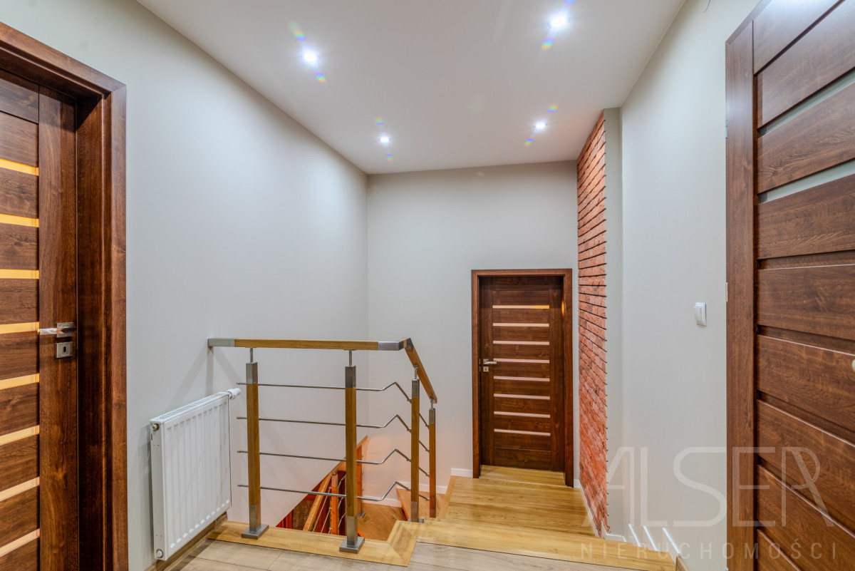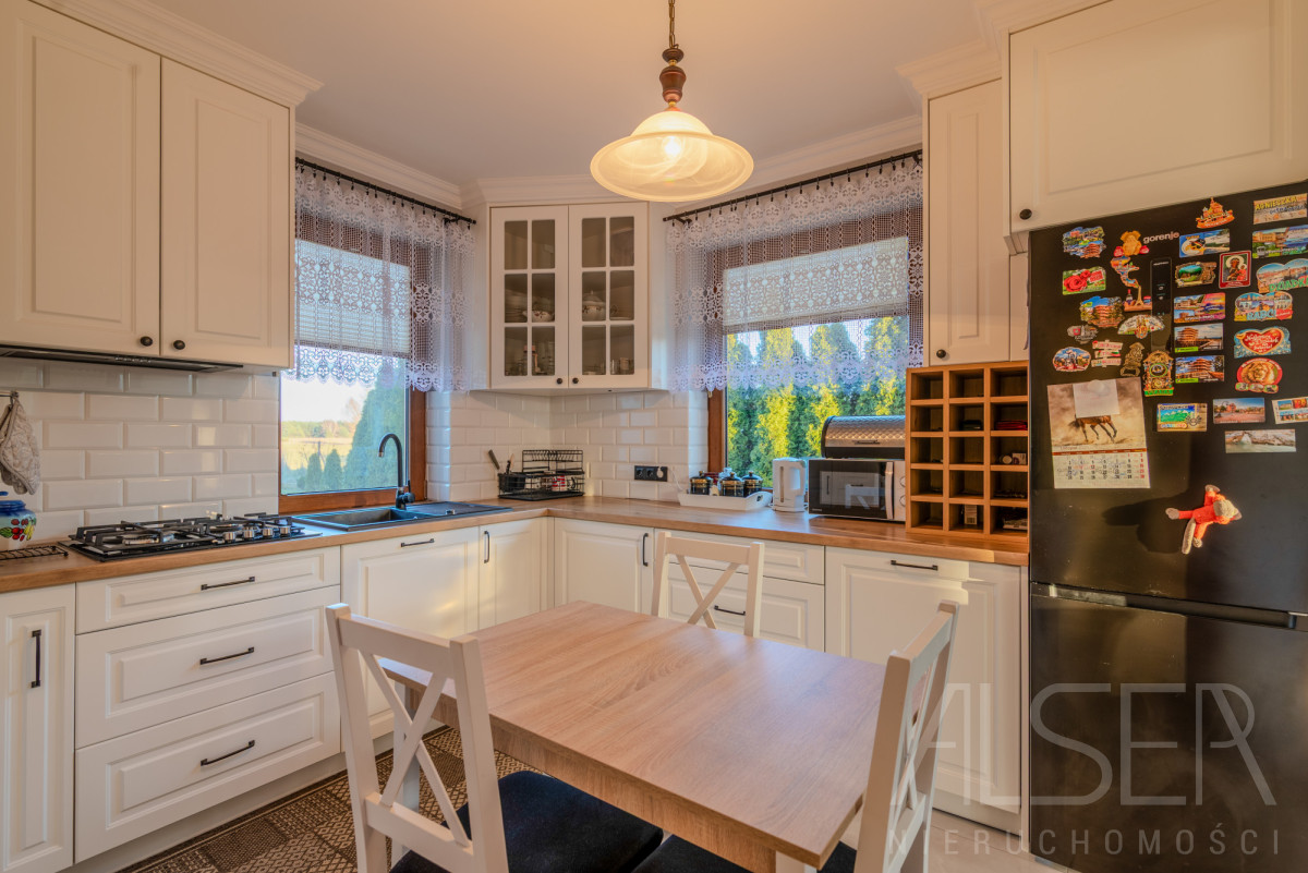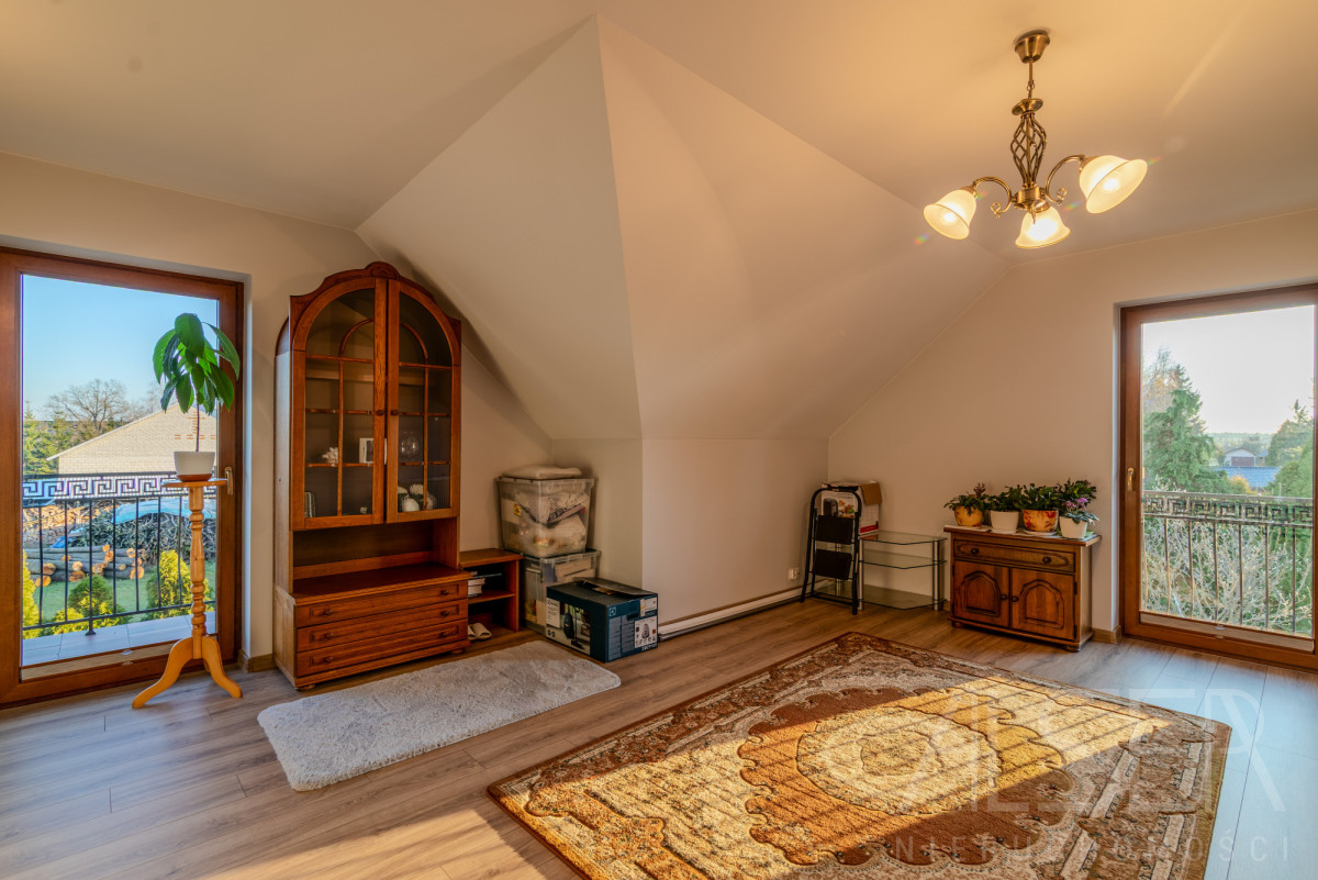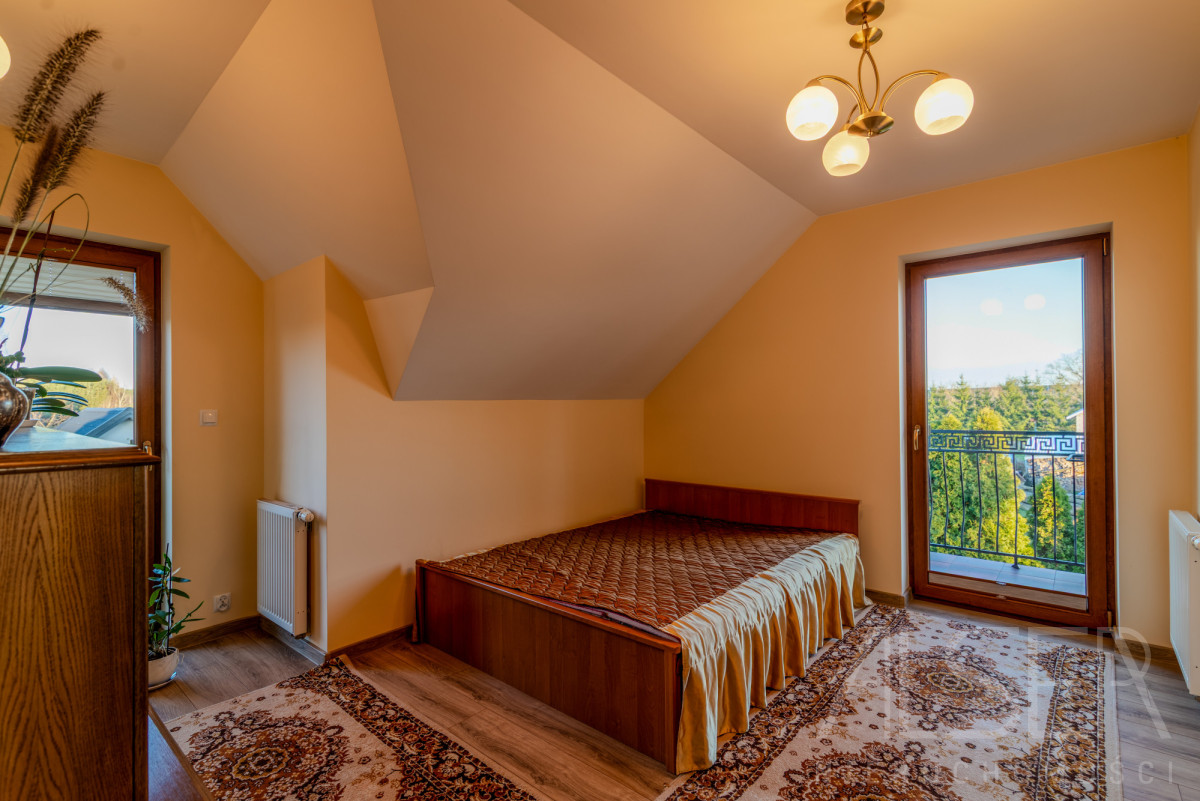 wybudowany w 2019 roku, zachowany w idealnym stanie. Powierzchnia użytkowa domu wynosi 141,10 m2. Dom składa się z parteru, piętra oraz strychu. Dwa sklepienia. We wszystkich pomieszczeniach okna PCV. Na podłogach położony gres oraz panele podłogowe. Ogrzewanie piecem na pellet. Rozkład poszczególnych kondygnacji wygląda następująco: