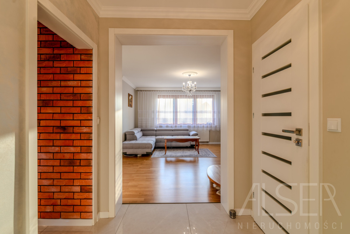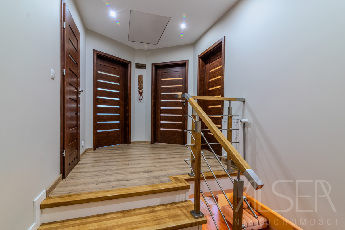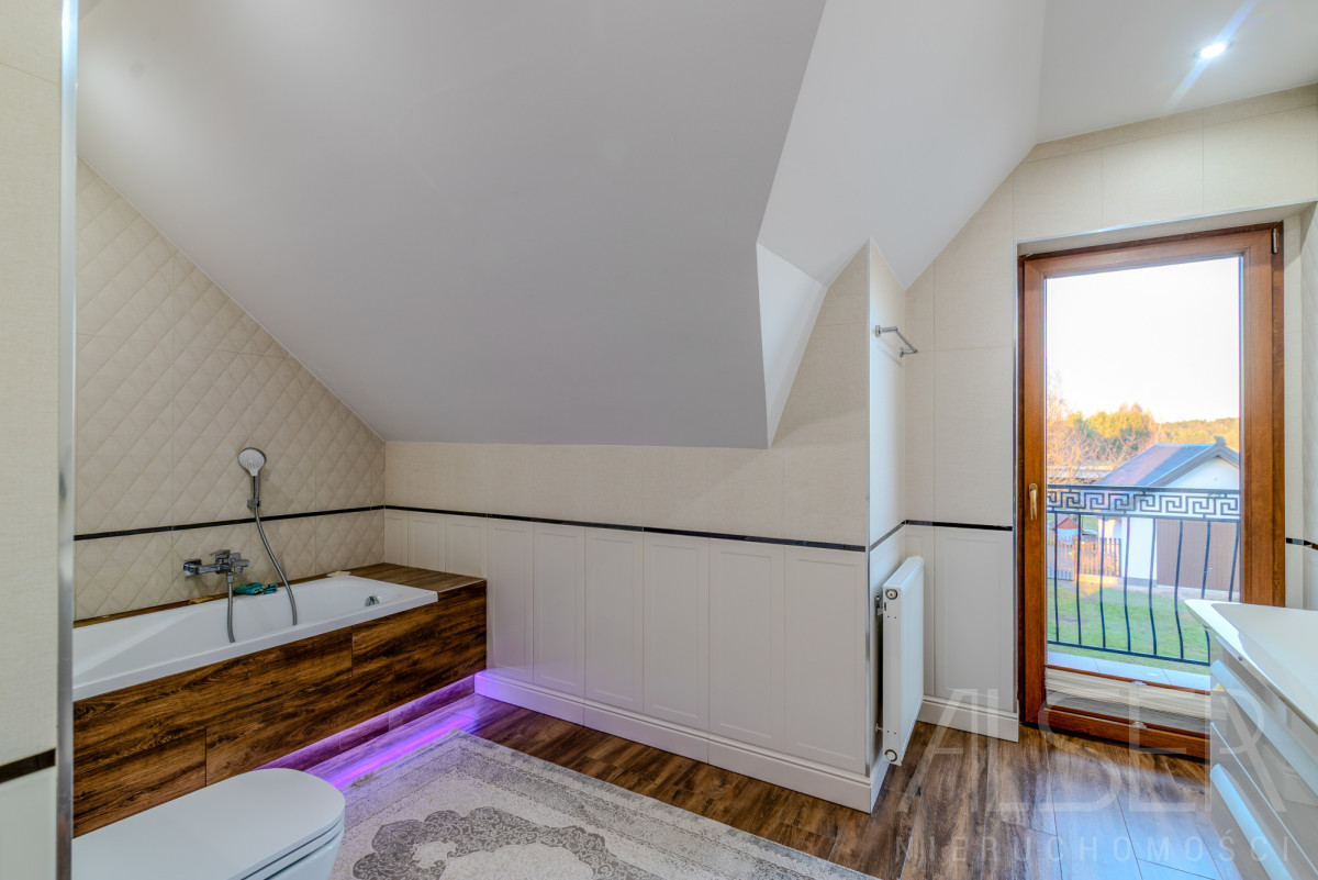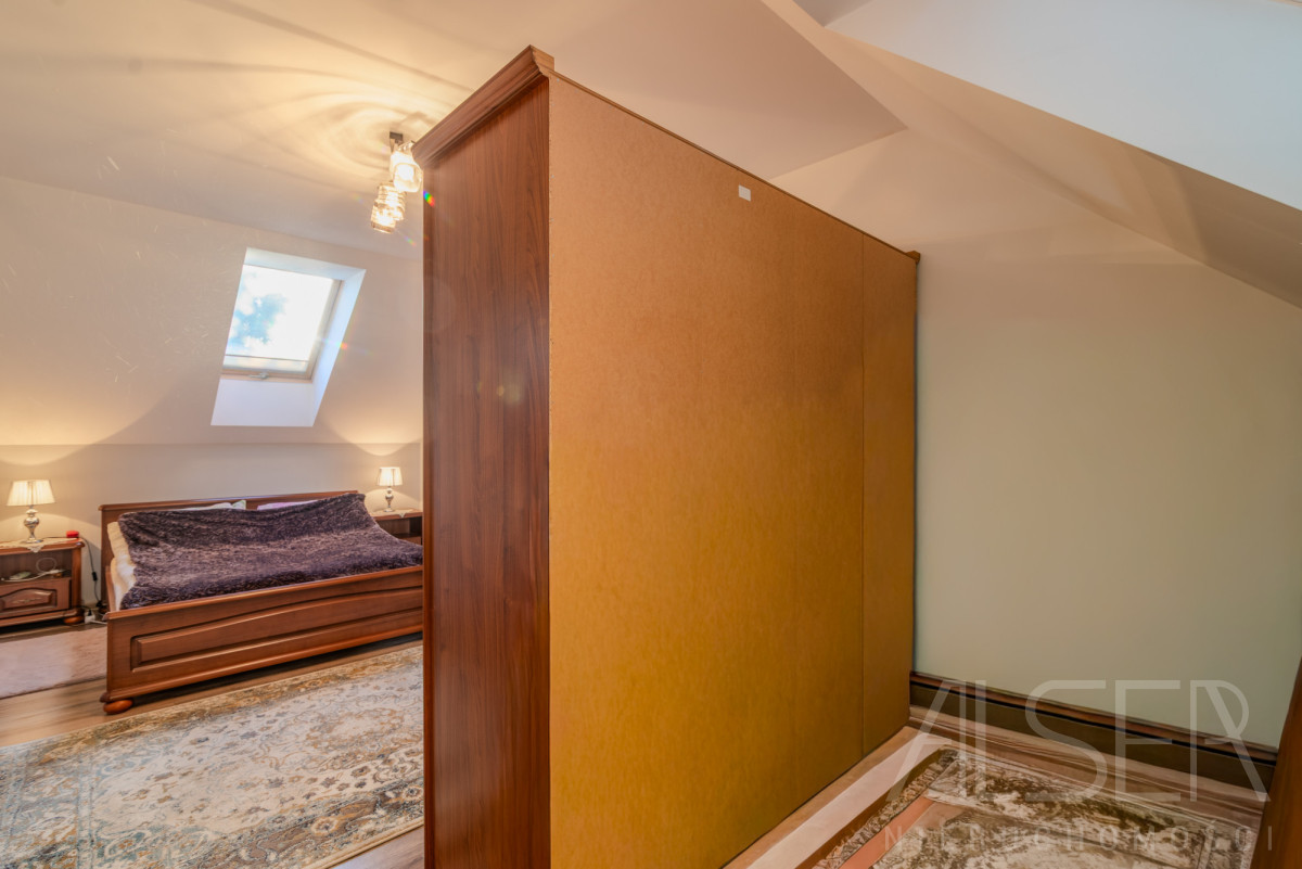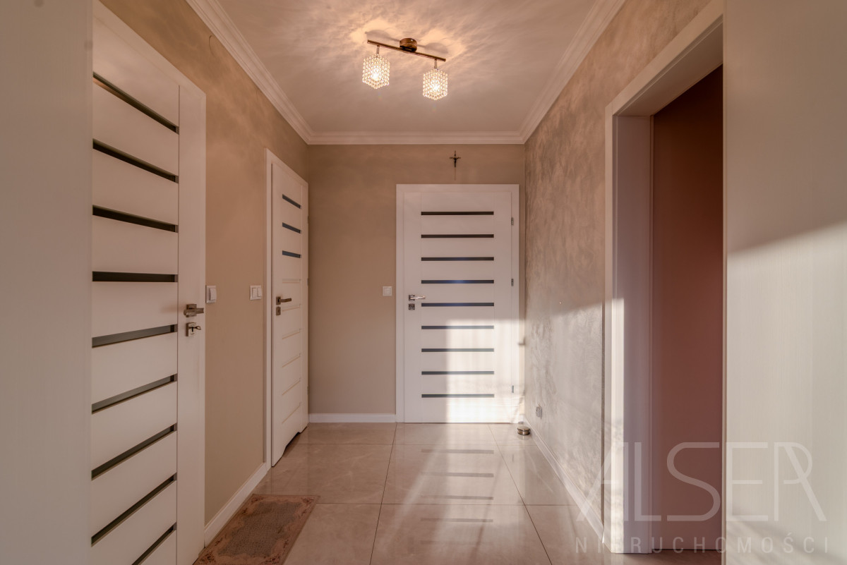wybudowany w 2019 roku, zachowany w idealnym stanie. Powierzchnia użytkowa domu wynosi 141,10 m2. Dom składa się z parteru, piętra oraz strychu. Dwa sklepienia. We wszystkich pomieszczeniach okna PCV. Na podłogach położony gres oraz panele podłogowe. Ogrzewanie piecem na pellet. Rozkład poszczególnych kondygnacji wygląda następująco: