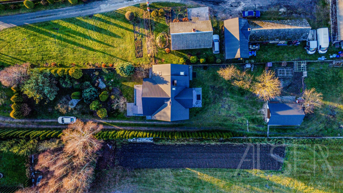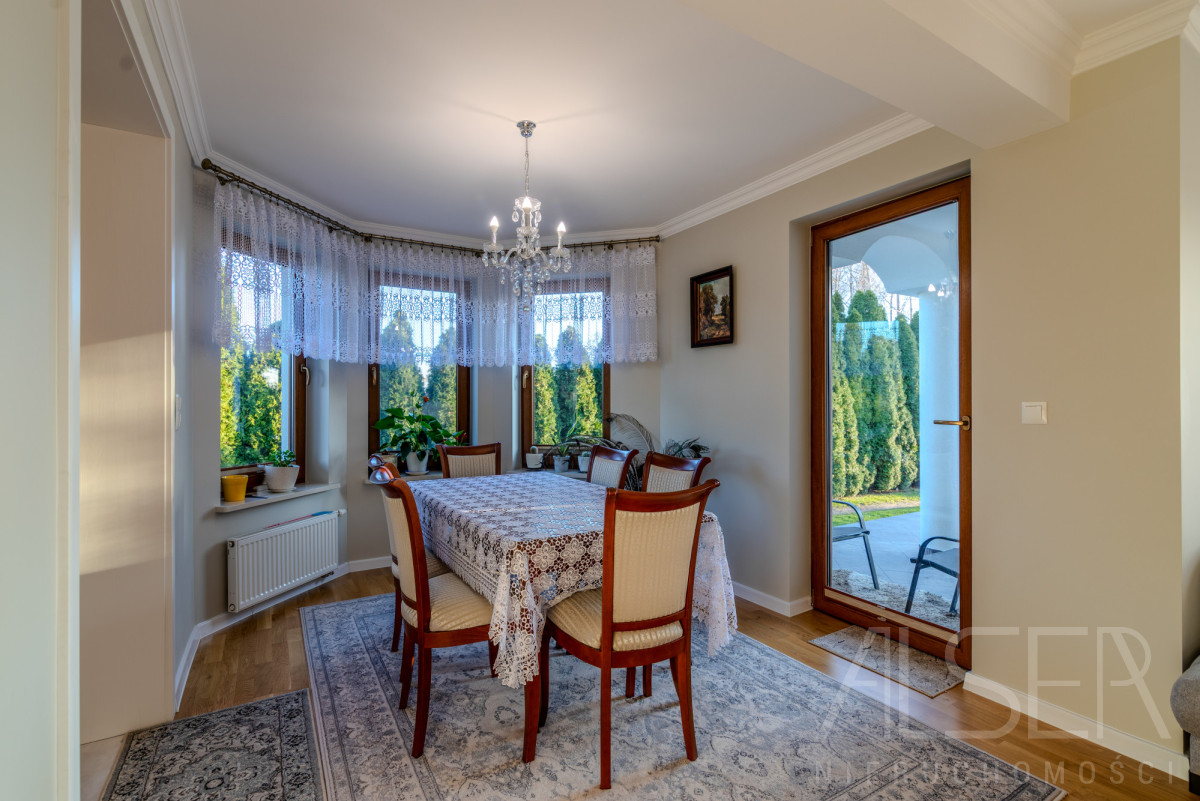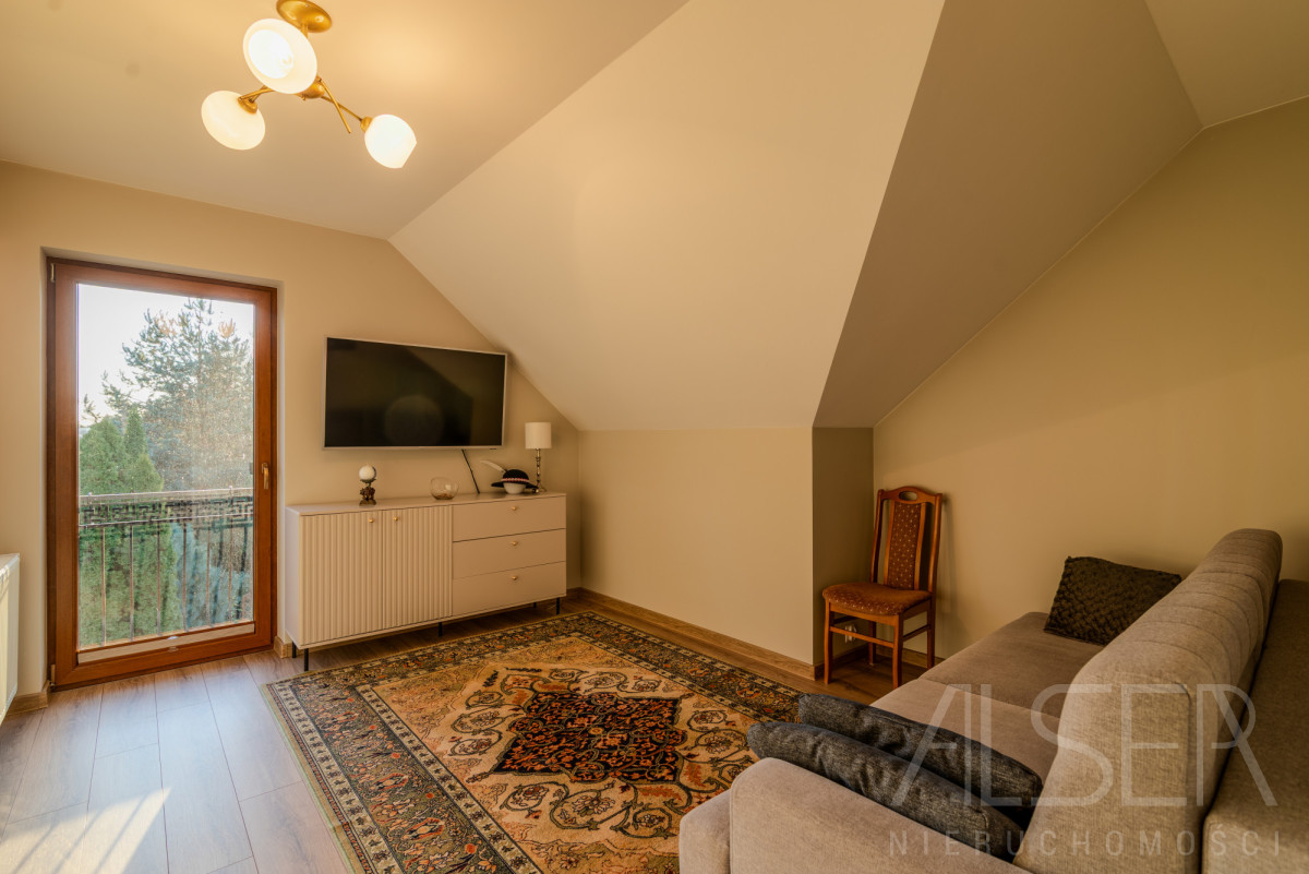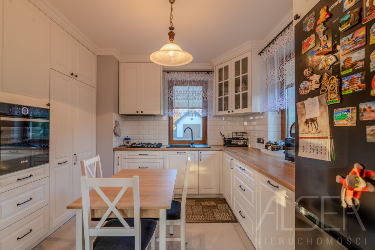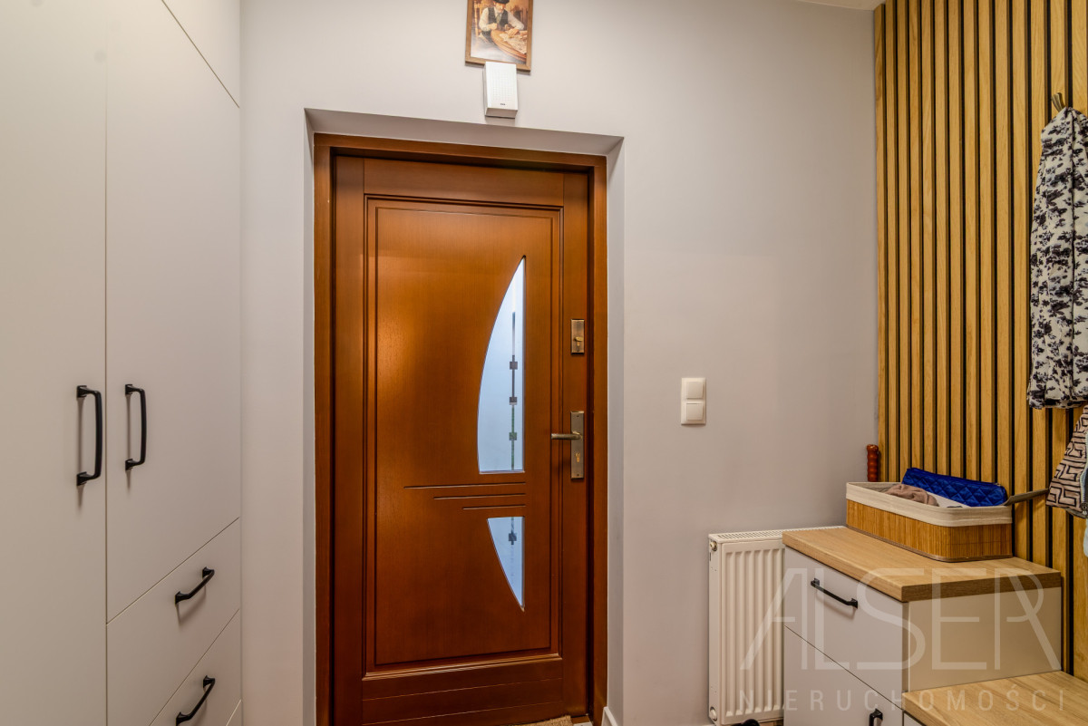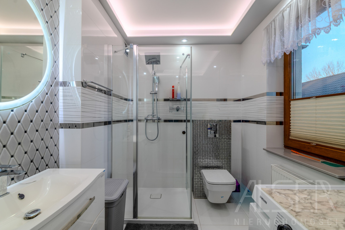 wybudowany w 2019 roku, zachowany w idealnym stanie. Powierzchnia użytkowa domu wynosi 141,10 m2. Dom składa się z parteru, piętra oraz strychu. Dwa sklepienia. We wszystkich pomieszczeniach okna PCV. Na podłogach położony gres oraz panele podłogowe. Ogrzewanie piecem na pellet. Rozkład poszczególnych kondygnacji wygląda następująco: