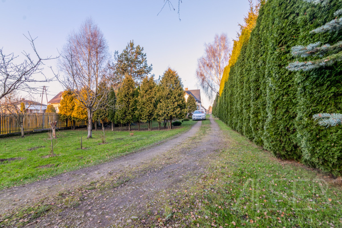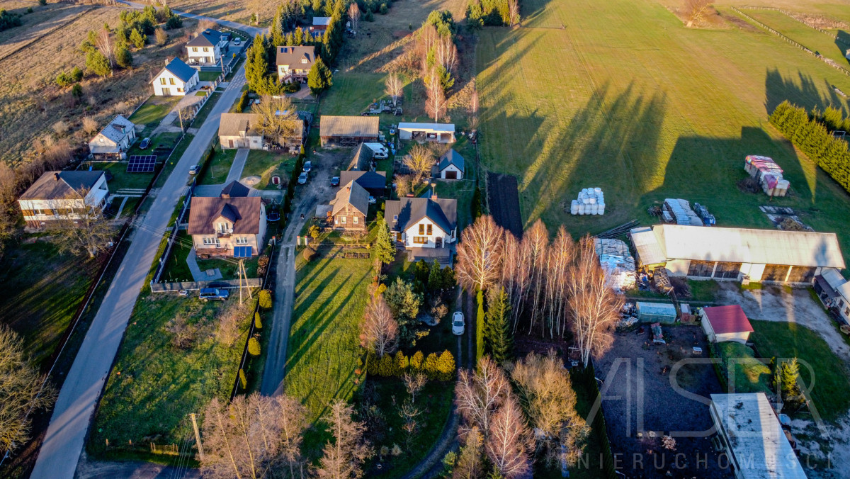 w kształcie prostokąta o powierzchni 2500 m2 o wymiarach około 22 m szerokości i 120 m głębokości. Do działki doprowadzona woda miejska, sieć energii elektrycznej, na działce oczyszczalnia przydomowa. Działka ogrodzona, dojazd do posesji drogą asfaltową, w niewielkiej części drogą utwardzoną gruntową gdyż działka położona jest w drugiej linii zabudowy.