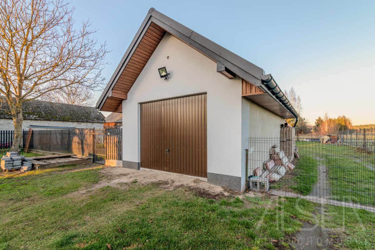 Ergonomiczny, funkcjonalny dom z garażem w bryle budynku, osobnym garażem oraz zadbanym ogródkiem