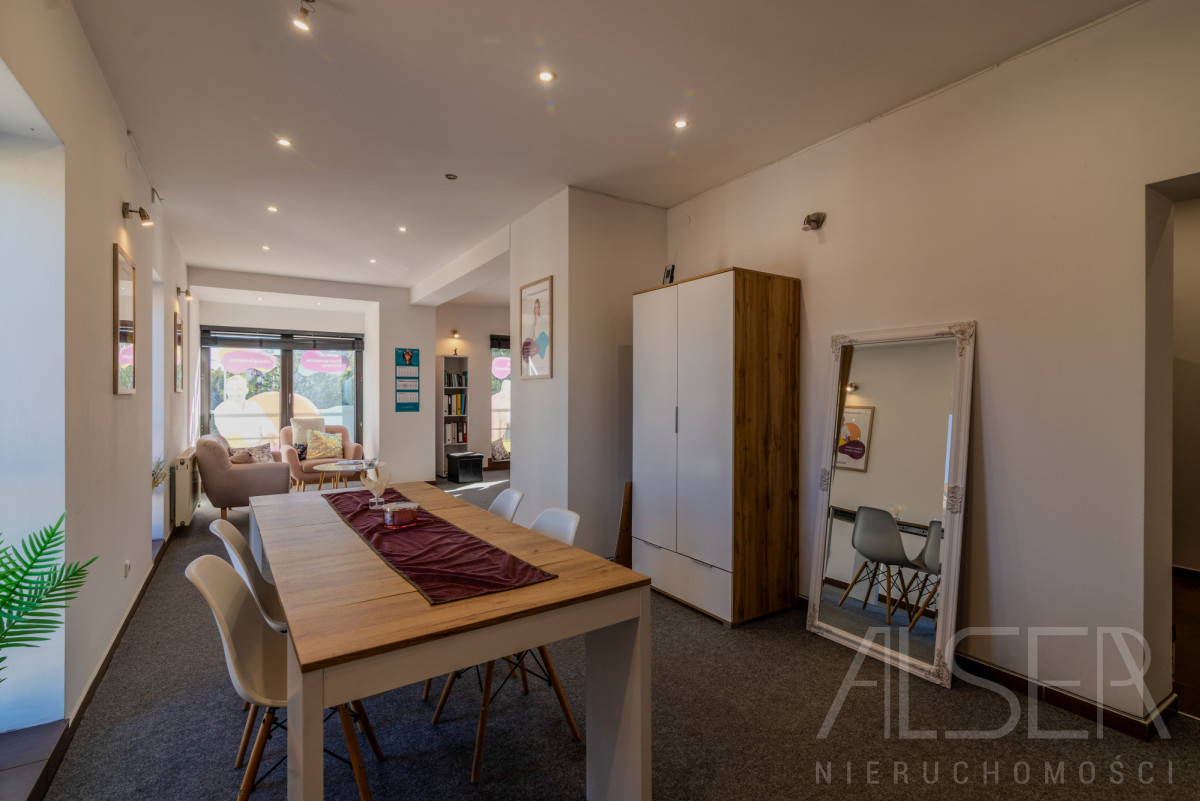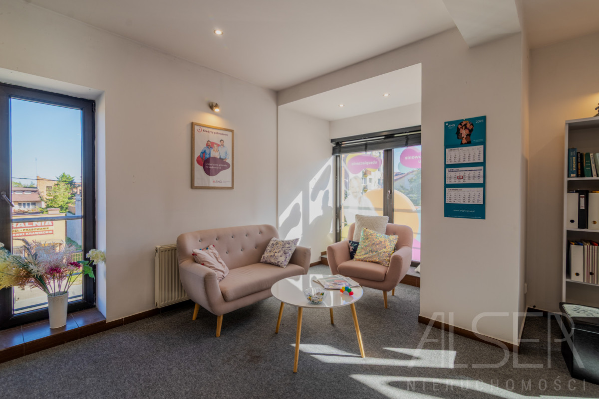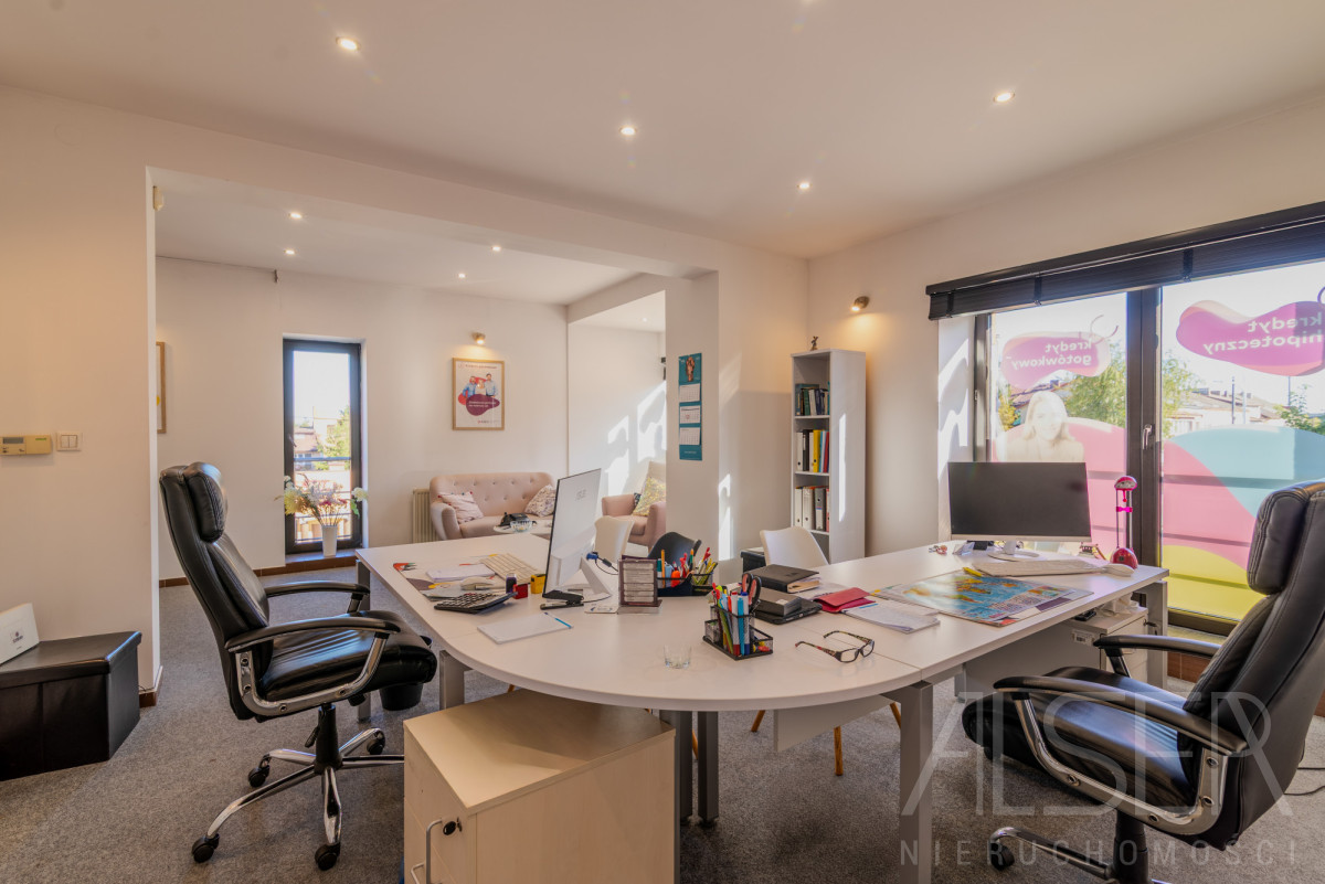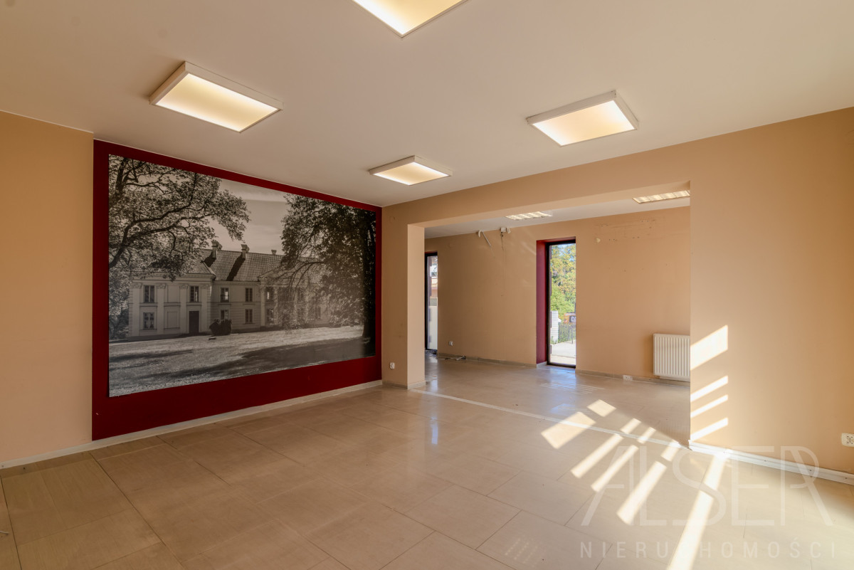 Budynek składa się z części usługowej na parterze oraz piętrze o łącznej powierzchni 124,88 m2
