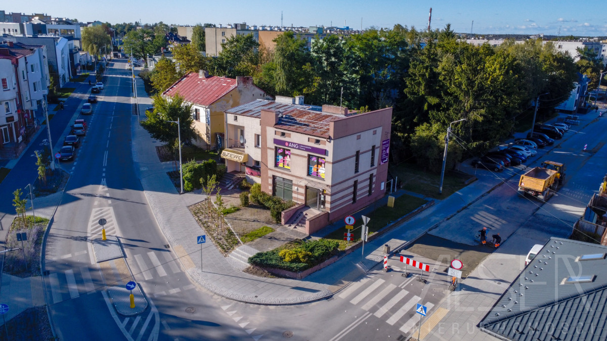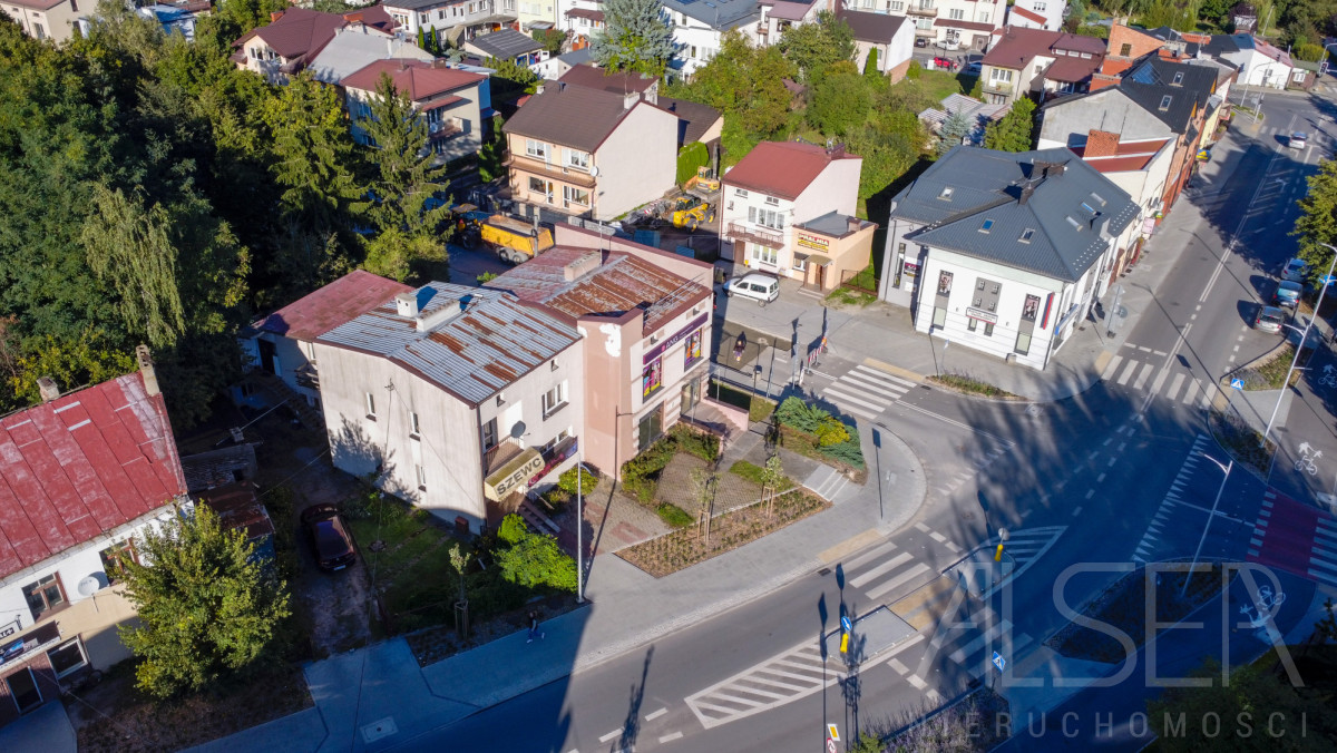 Budynek mieszkalno-usługowy wybudowany cegły, dwu kondygnacyjny z poddaszem nieużytkowym, w całości podpiwniczony.