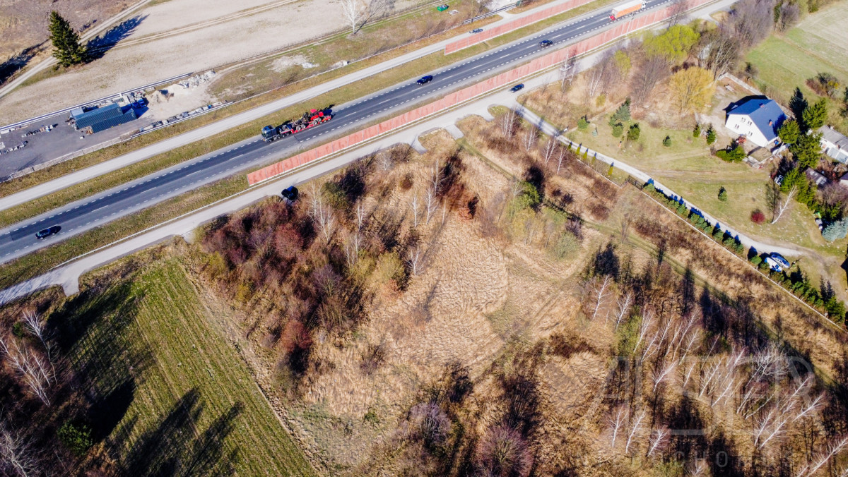 Dojazd do działki drogą gruntową - ok. 50-150 m do drogi utwardzonej, dodatkowo możliwy dojazd od strony drogi serwisowej przy trasie krajowej.