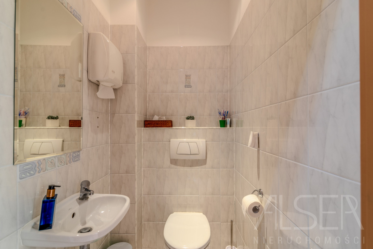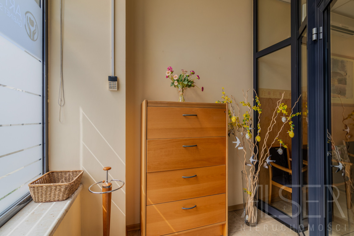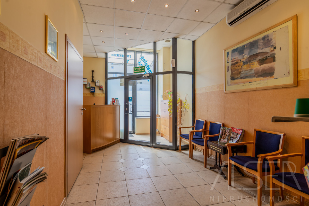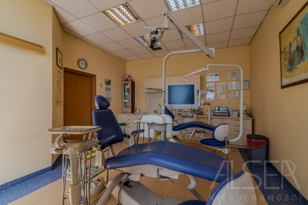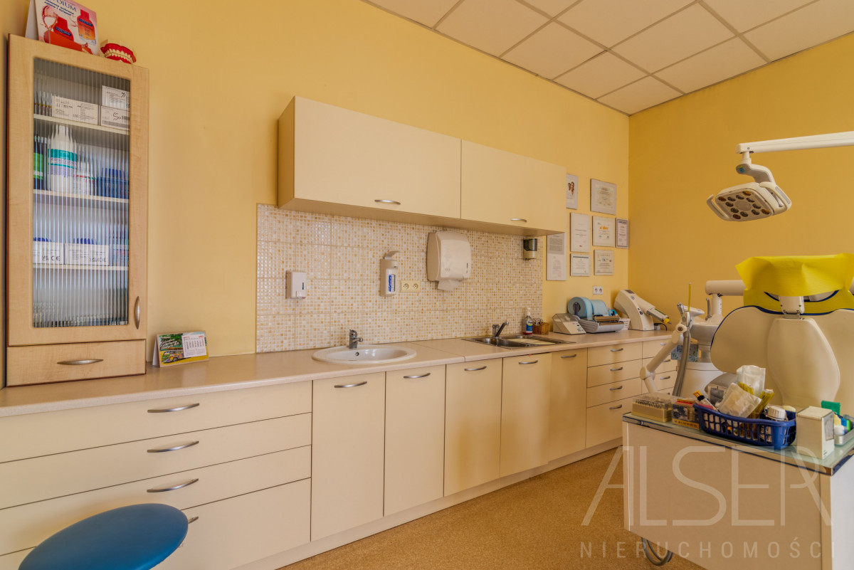 Do sprzedaży lokal użytkowy o powierzchni całkowitej 62,30 m2, a użytkowej 59,30 m2. Lokal od samego początku pełnił funkcję gabinetu stomatologicznego, na który to został sporządzony projekt w 2002 roku. Wysokość lokalu w stanie deweloperskim wynosiła 4 metry wysokości, po adaptacji zamontowane zostały podwieszane sufity, gdzie w zależności od pomieszczeń ich wysokość wynosi 2.80 - 3.00 metry wysokości. Lokal utrzymany w bardzo dobrym stanie. Niewątpliwym atutem jest sprzedaż tego lokalu wraz z całym jego wyposażeniem oraz meblami - cenie. Wykaz wyposażenia wygląda następująco: