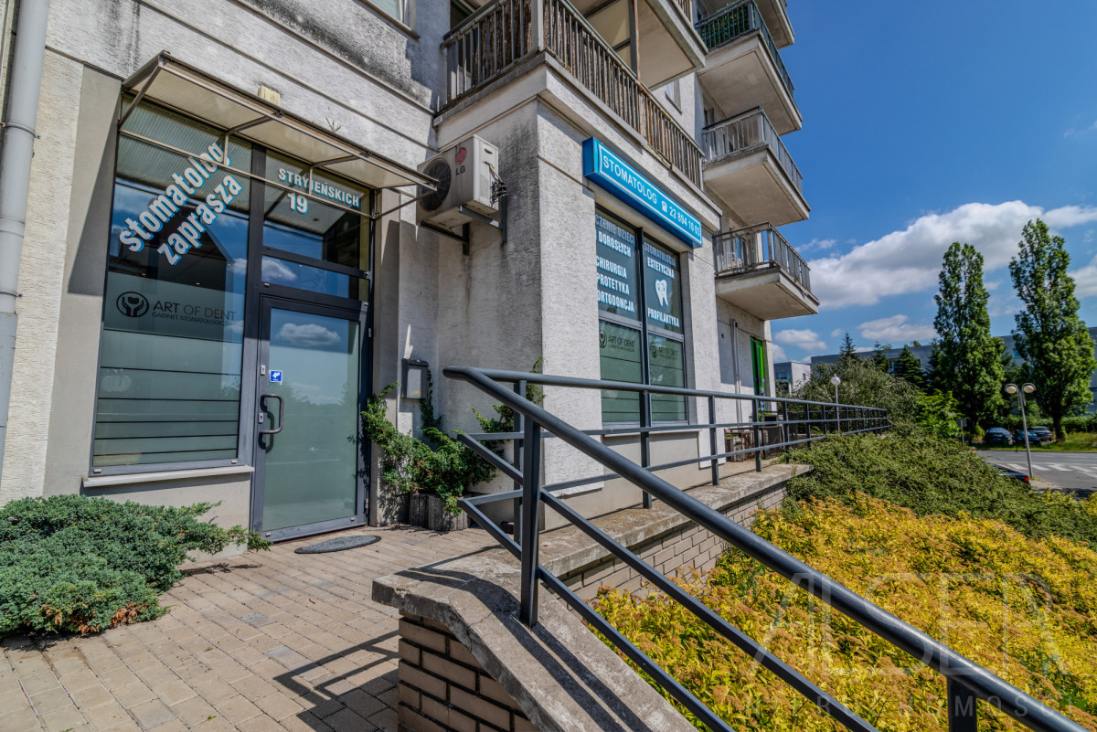 Budynek usytuowany przy ul. Stryjeńskich 19 wybudowany w 2002 roku. Na zewnątrz wydzielone jest miejsce na własny szyld. W okolicy znajduje się zabudowa domów mieszkalnych jednorodzinnych i wielorodzinnych. Parking ogólnodostępny przed lokalem. W niedalekiej odległości znajduje się ,,Bikepark Kazoora''. Lokal posiada alarm oraz monitoring całodobowy indywidualny. Niewątpliwym atutem są szyby i drzwi antywłamaniowe.