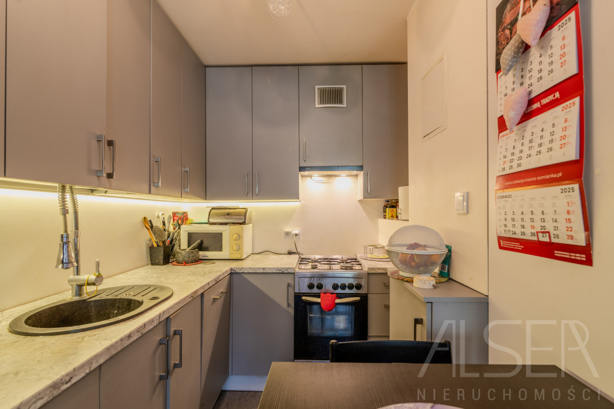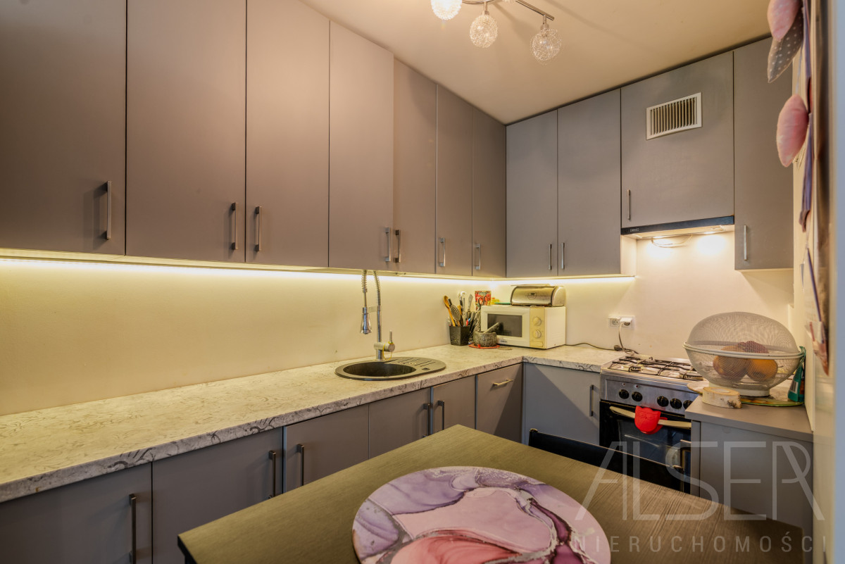 2-pokojowe rozkładowe mieszkanie z aneksem kuchennym oraz łazienką z WC o łącznej powierzchni 37,85 m2, w dużej części umeblowane. Kuchnia otwarta na salon, zmywarka, lodówka, piekarnik, kuchenka gazowa, szafki na wymiar. Łazienka wyposażona w kabinę prysznicową, pralkę. Lokal w dobrym stanie ( remont przeprowadzony 5 lat temu), gotowy do zamieszkania. W przedpokoju duża szafa na wymiar. Mieszkanie jednostronne z ekspozycją na wschód (od podwórka). Zabudowa, meble oraz sprzęt w cenie mieszkania. Mieszkanie czyste, zadbane. Wszystkie okna PCV w dobrym stanie.