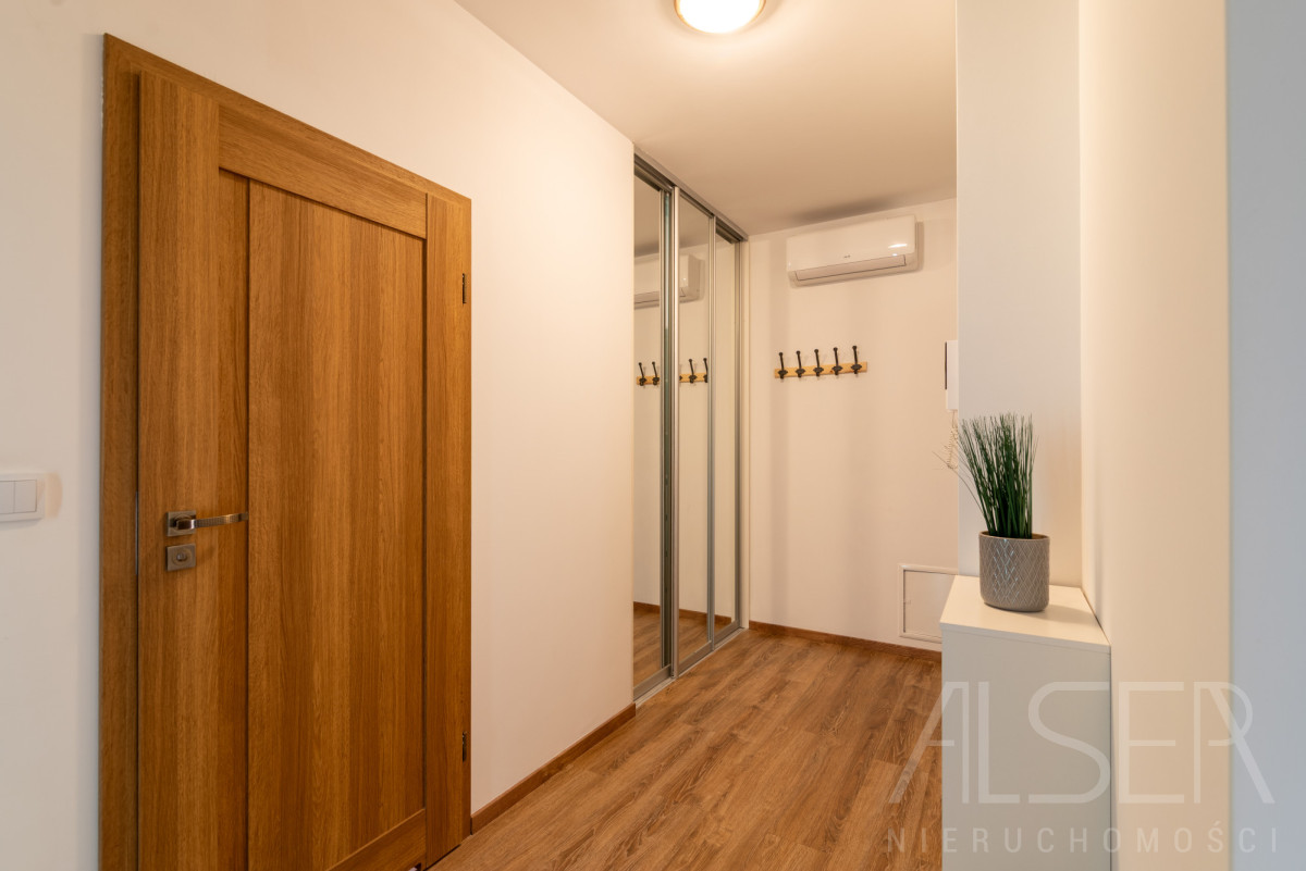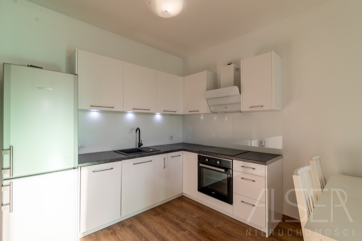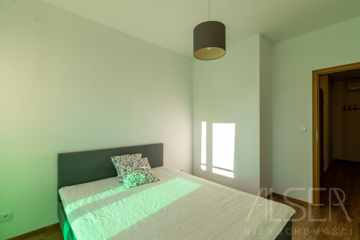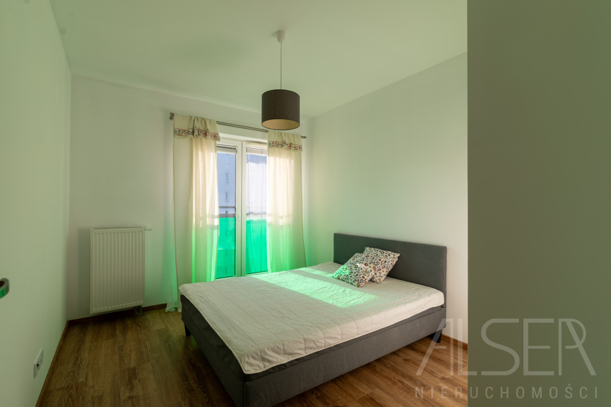 Do wynajmu świetnie zlokalizowane 2 pokojowe mieszkanie o pow. 48 m2 z garażem podziemnym i komórką lokatorską w nowoczesnym budynku na Mokotowie - Służew nad Dolinką u zbiegu ulic Mozarta, Wróbla i Bacha.
