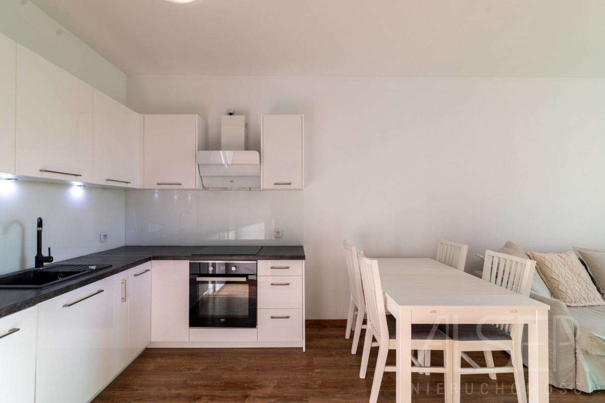 Mieszkanie jest w pełni umeblowane (widoczne jak na zdjęciach), gotowe do wprowadzenia. Kuchnia wyposażona w lodówkę z zamrażarką, piec elektryczny, zmywarkę. W łazience znajduję się pralka. Zamontowana została również klimatyzacja.