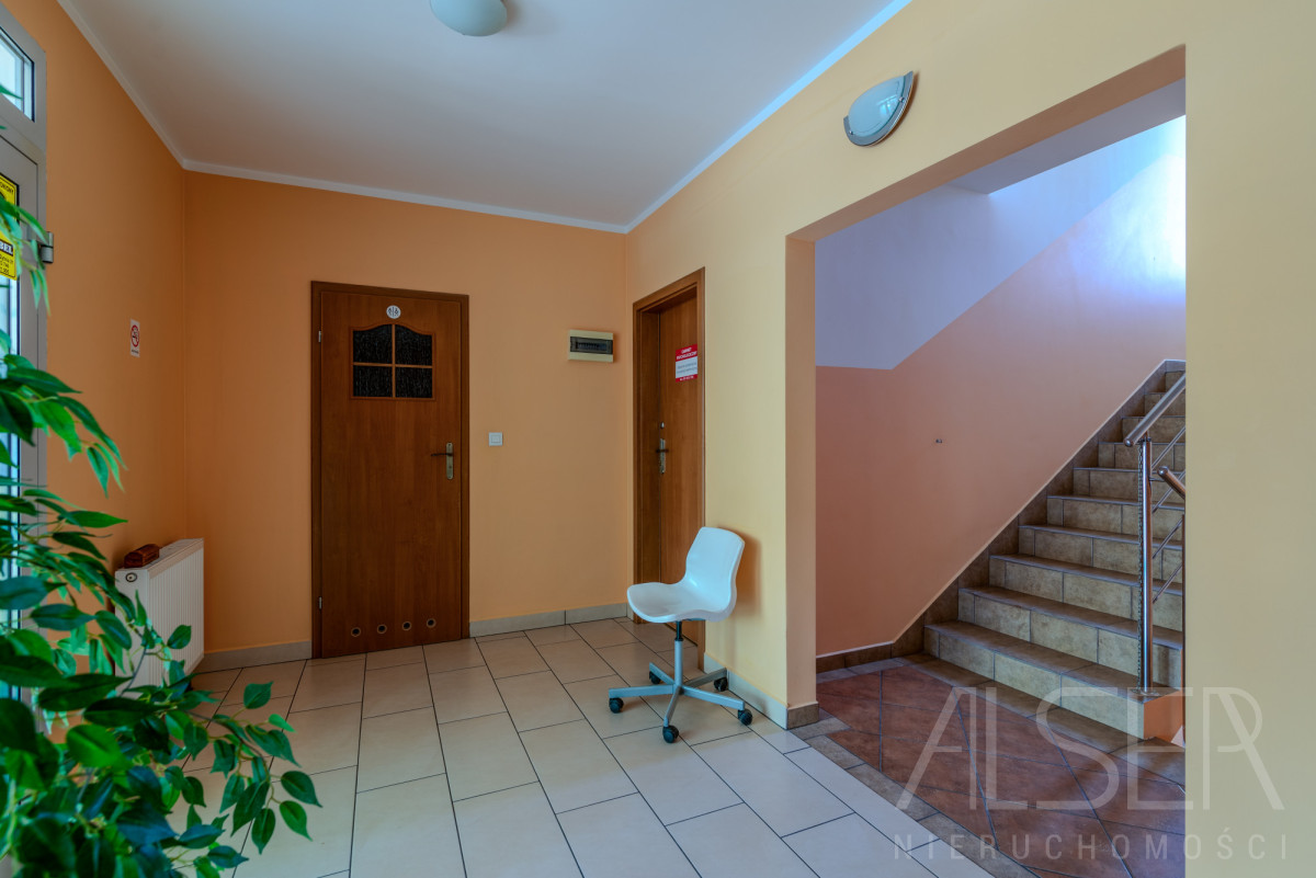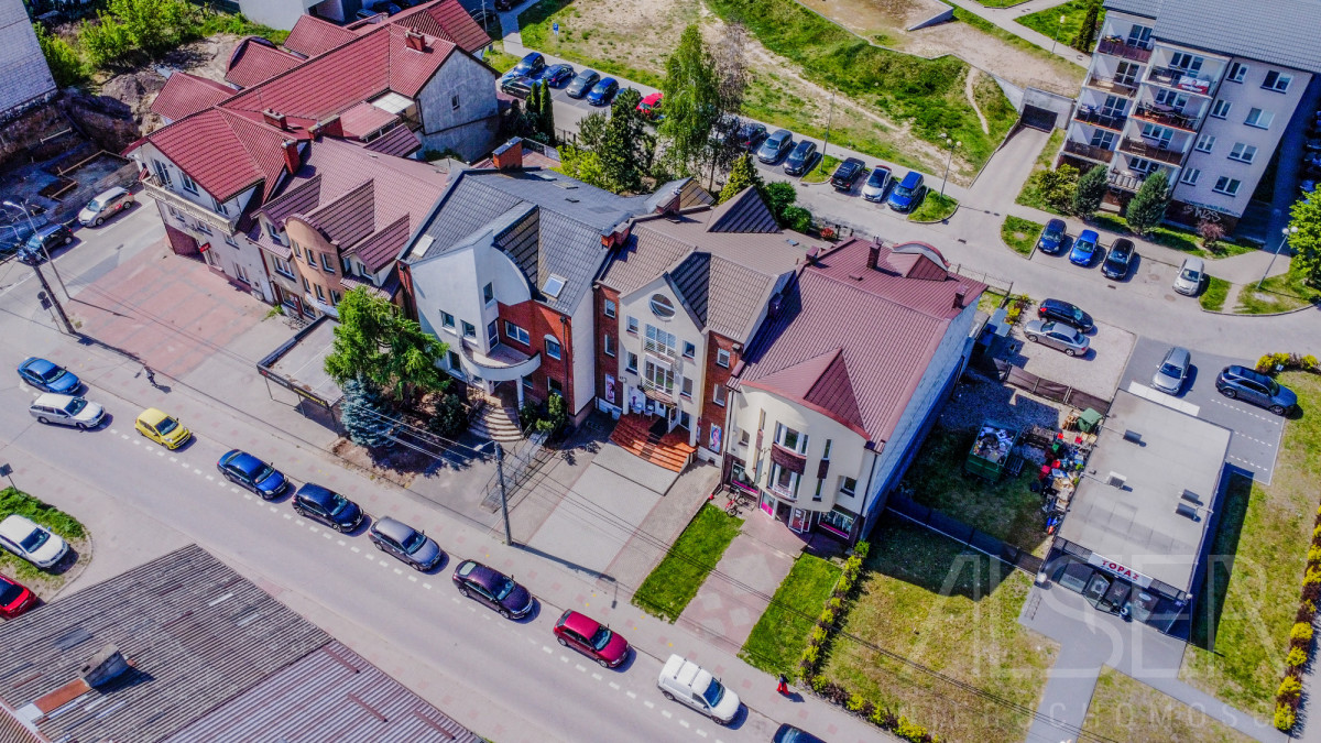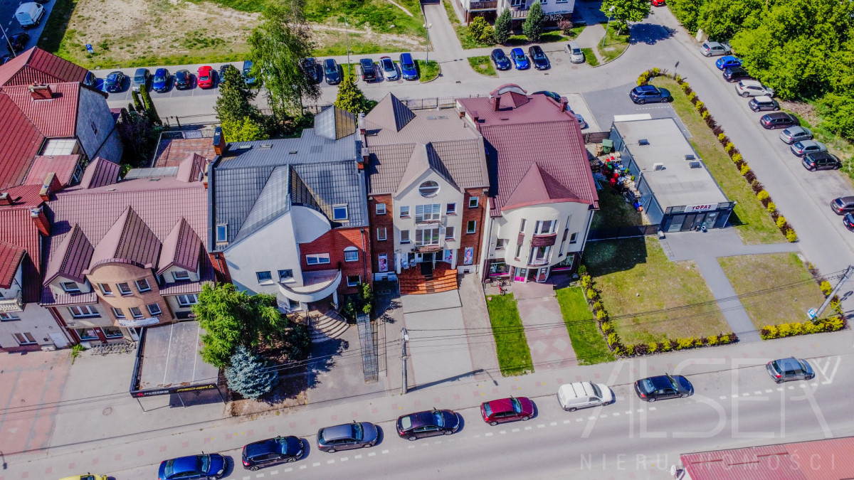 Budynek usytuowany przy ul. Wąska 17 oddany do użytkowania w 2004 roku docieplony styropianem. Na zewnątrz od ulicy jest miejsce na własny szyld. Lokal znajduje się na pierwszym piętrze bez windy. Parking dla klientów jest ogólnodostępny. Z tyłu budynku jest możliwość, aby parkować swój samochód na posesji. W części wspólnej, na piętrze znajduje się łazienka z WC i kabiną prysznicową.